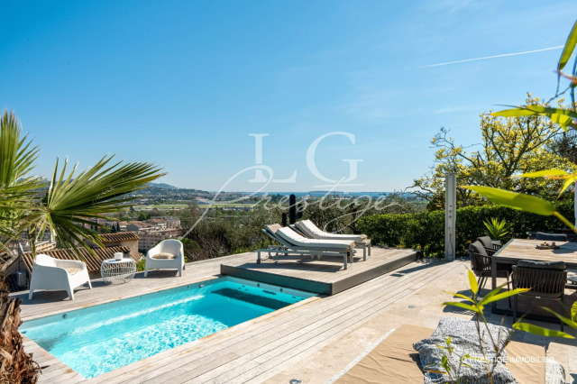 Maison avec vue mer et montagne entièrement rénovée et commerces à pied. Belle maison de 175 m² entièrement rénovée, offrant une superbe vue dégagée sur la mer, les îles de Lérins, les collines et les montagnes, idéalement située à 5 minutes à pied des commerces, dans un quartier calme et prisé sur les hauteurs du centre-ville.