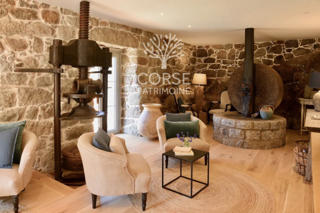 Ancien moulin du XVIe siècle, cette demeure historique a été entièrement restaurée avec des matériaux nobles. Son atmosphère allie élégance contemporaine et caractère d'époque, pour offrir un cadre de vie aussi chaleureux que raffiné. Dans un environnement préservé, calme et verdoyant, la propriété offre une vue magnifique sur les montagnes corses et se distingue par son ambiance paisible et son authenticité rare.